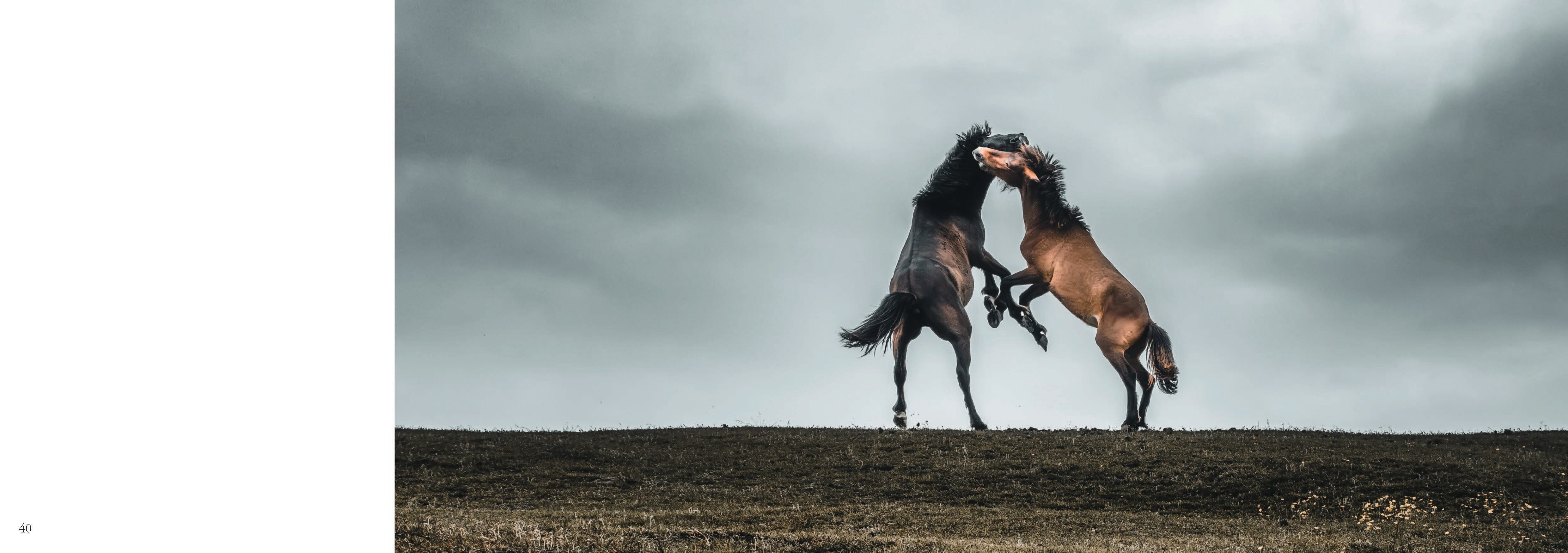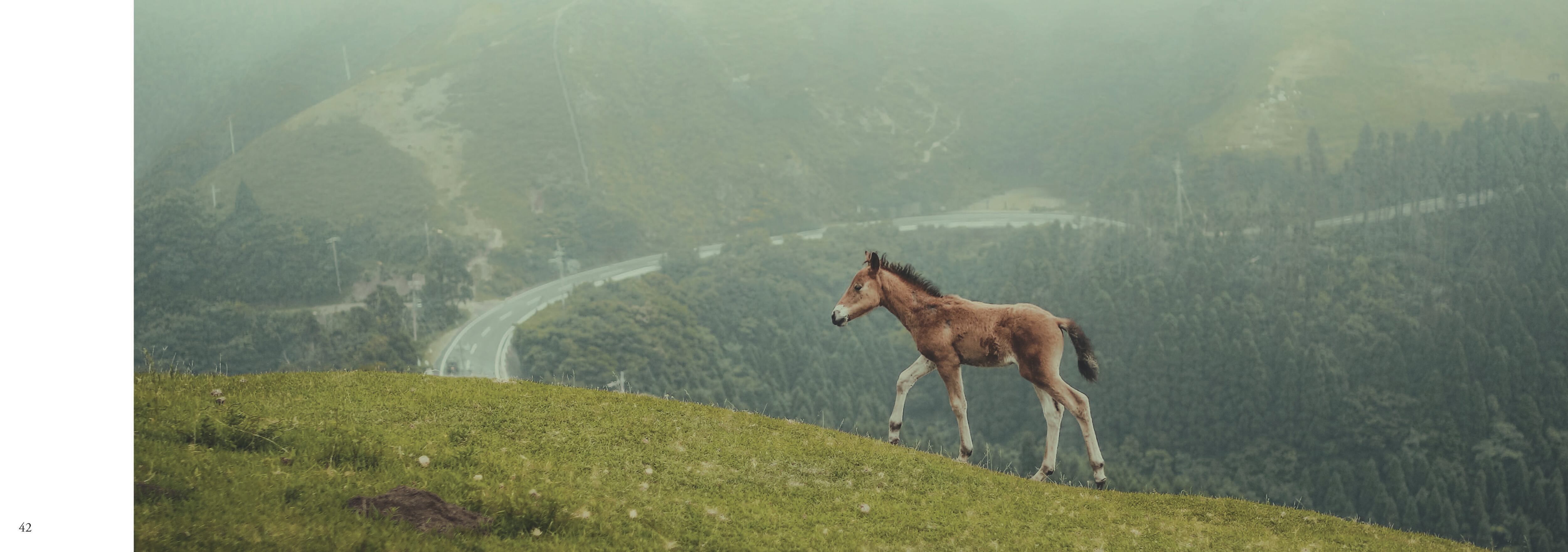 宮崎県の南端、串間市の都井岬には、日本に現存する8種類の在来馬の1種である御崎馬が生息している。彼らは自力で餌を食べ、自然に繁殖をし、江戸時代から今日まで脈々と命を繋いできた。都井岬の美しい風景のなか、穏やかで悠然とした彼らの姿を撮り続けた作品を「朝」「昼」「夕」「夜」に分けて4巻で紹介する。今回の「朝凪」は太陽が昇り始めた早朝から天高く太陽が昇りきるころまでの馬たちの姿をとらえたもの。